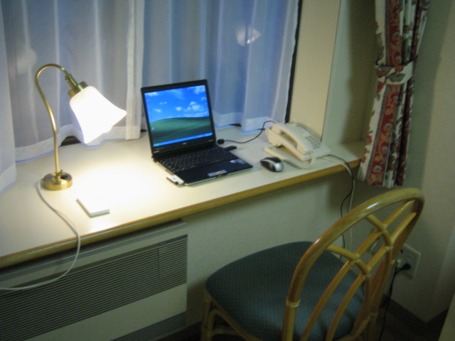 出窓部分がデスク代わりになっています。さっそくパソコンを置いて仕事モードにw