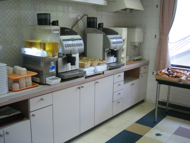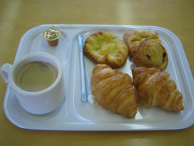朝食は、「焼きたてパンとコーヒー&紅茶」です。セルフサービスです。