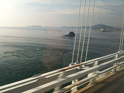 鳴門のうず潮が見えたよ! 鳴門海峡(鳴門大橋)を渡ってると車掌さんから突然アナウンスが!(まだ朝だし、運航途中では車内放送はしないと言ってたのにw)