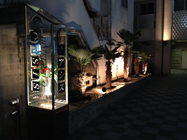 夜に外出して戻ってきたら素敵になっていました。ガラスの中に照明があってロマンチック。