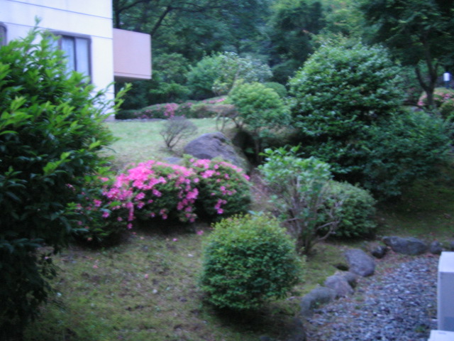 窓から見える中庭も緑と花がきれいで癒されますね。でもすぐに日が暮れてしまいましたけど(笑)