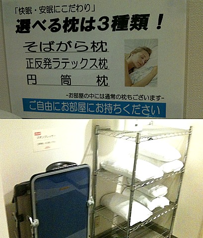私は、そばがらの枕と正反発枕を2個持ってきました(笑)そしてそれをを2段重ねにして寝てみましたw