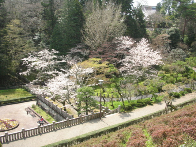 この平和大塔から東側に成田山公園が広がっています。これは大塔から公園の広場(?)を見下ろした風景です。